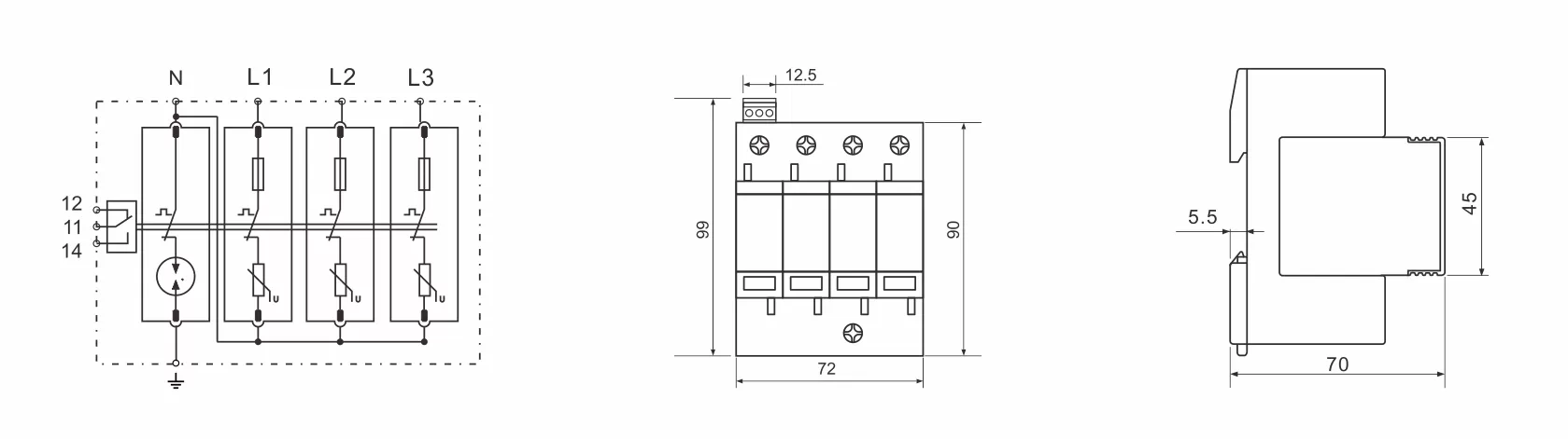 | Max. discharge current (8/20μs) (L-N/N-PE) | Imax | 30kA/40kA | 30kA/40kA | 30kA/40kA | 30kA/40kA | 30kA/40kA |