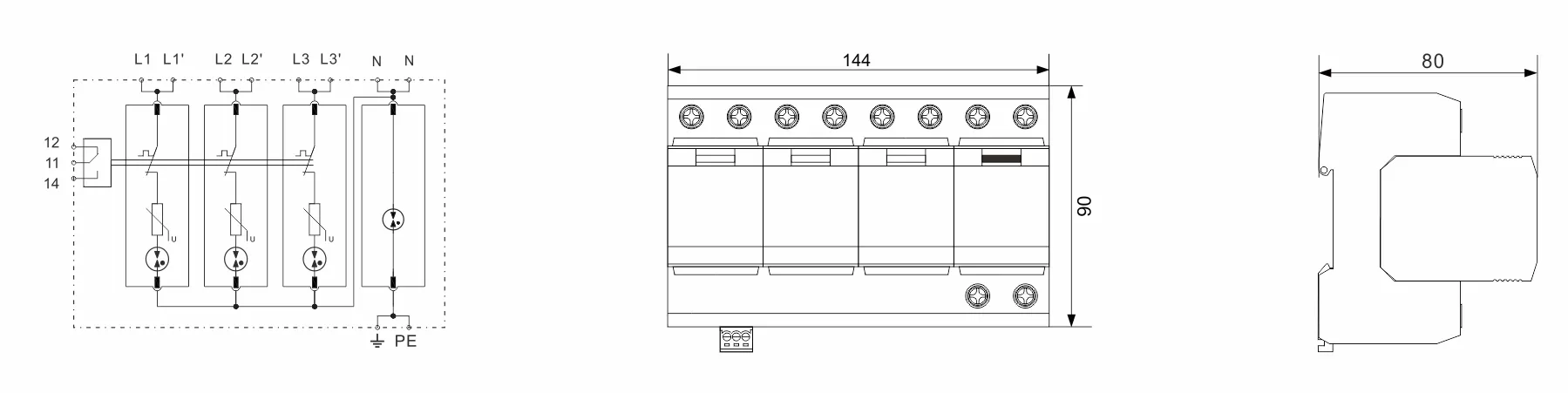 | Max. ontlaadstroom (8/20μs) | Imax(L-N/N-PE) | 100kA/160kA | 100kA/160kA | 100kA/160kA |